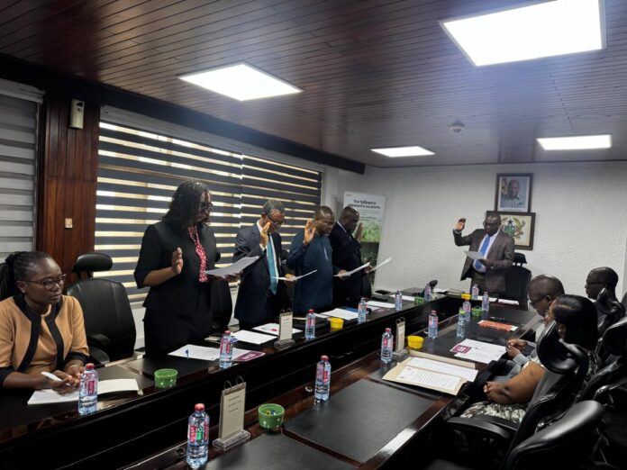 Mr. T.A. Thompson-Aryee, Ag. Director-General of the Internal Audit Agency (IAA) swore in the Audit Committee of the Social Security and National Insurance Trust (SSNIT) in the institution’s Board Room on 21st August 2021. Mr. Kwesi Afreh Biney, Ag. Director-General of SSNIT, was in attendance.